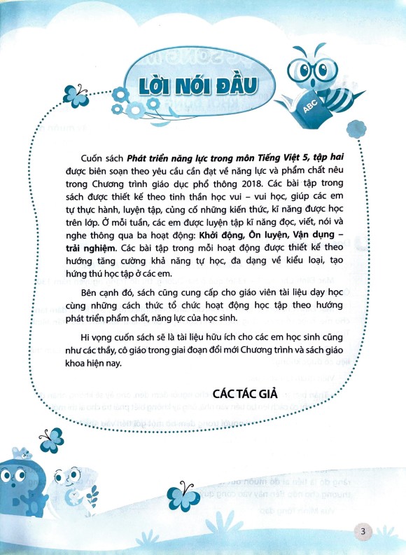 Các hoạt động, bài tập trong sách được biên soạn với tinh thần học vui - vui học, học tập tương tác, góp phần hình thành và phát triển một số năng lực, phẩm chất chung của học sinh tiểu học như giao tiếp, hợp tác, tự chủ, tự học, giải quyết vấn đề và các năng lực riêng của môn Tiếng việt.