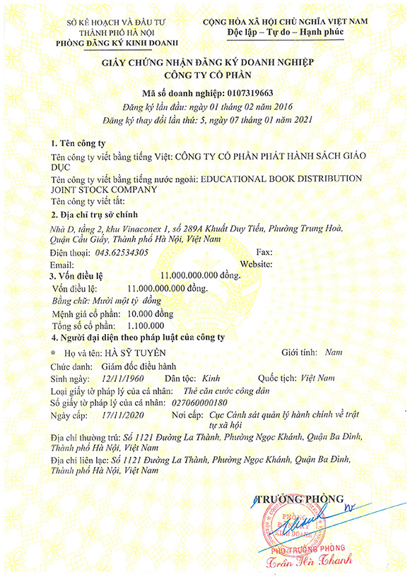 Đăng ký thay đổi lần thứ 5 ngày 07 tháng 01 năm 2021