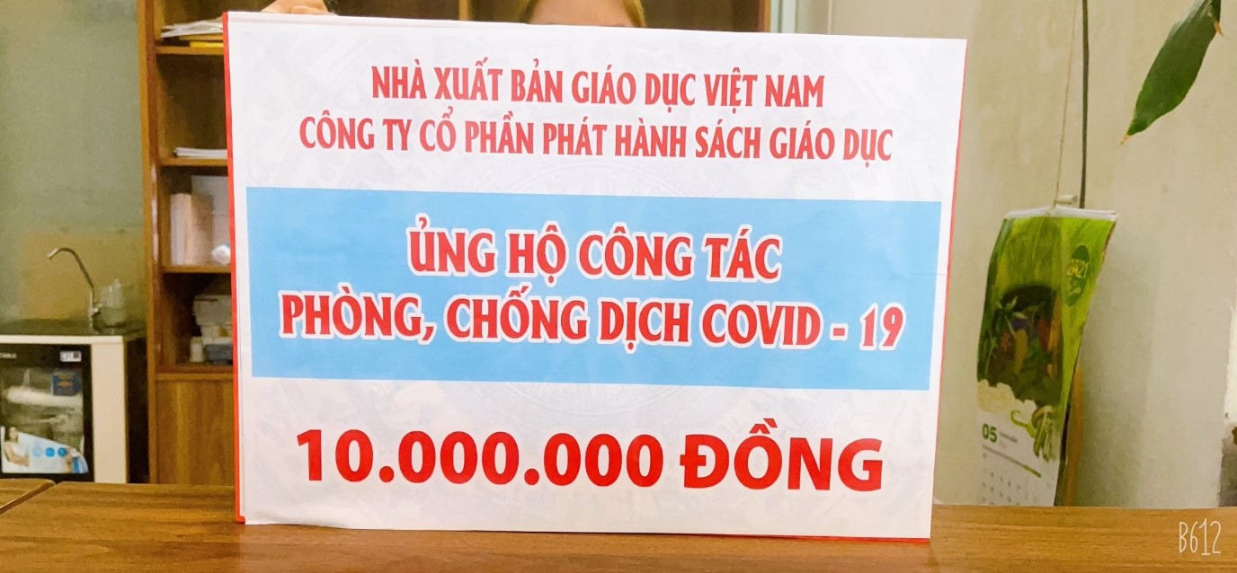 Hưởng ứng cuộc vận động toàn dân ủng hộ phòng, chống dịch COVID-19 do Đoàn Chủ tịch Uỷ ban Mặt trận Tổ quốc Trung ương phát động, ngày 31/5/2021, Nhà xuất bản Giáo dục Việt Nam đã kêu gọi sự đóng góp của toàn thể cán bộ, nhân viên, người lao động trong hệ thống chung tay cùng cả nước quyết tâm đẩy lùi bệnh dịch, đưa xã hội trở lại nhịp sống bình thường. Hoà vào tinh thần chung của toàn xã hội nói chung và hệ thống NXBGDVN nói riêng, mỗi cán bộ, nhân viên của Công ty cổ phần Phát hành Sách Giáo dục đã trích một ngày lương đóng góp cho quỹ phòng, chống dịch COVID-19 với số tiền quyên góp là 25.000.000 đồng.